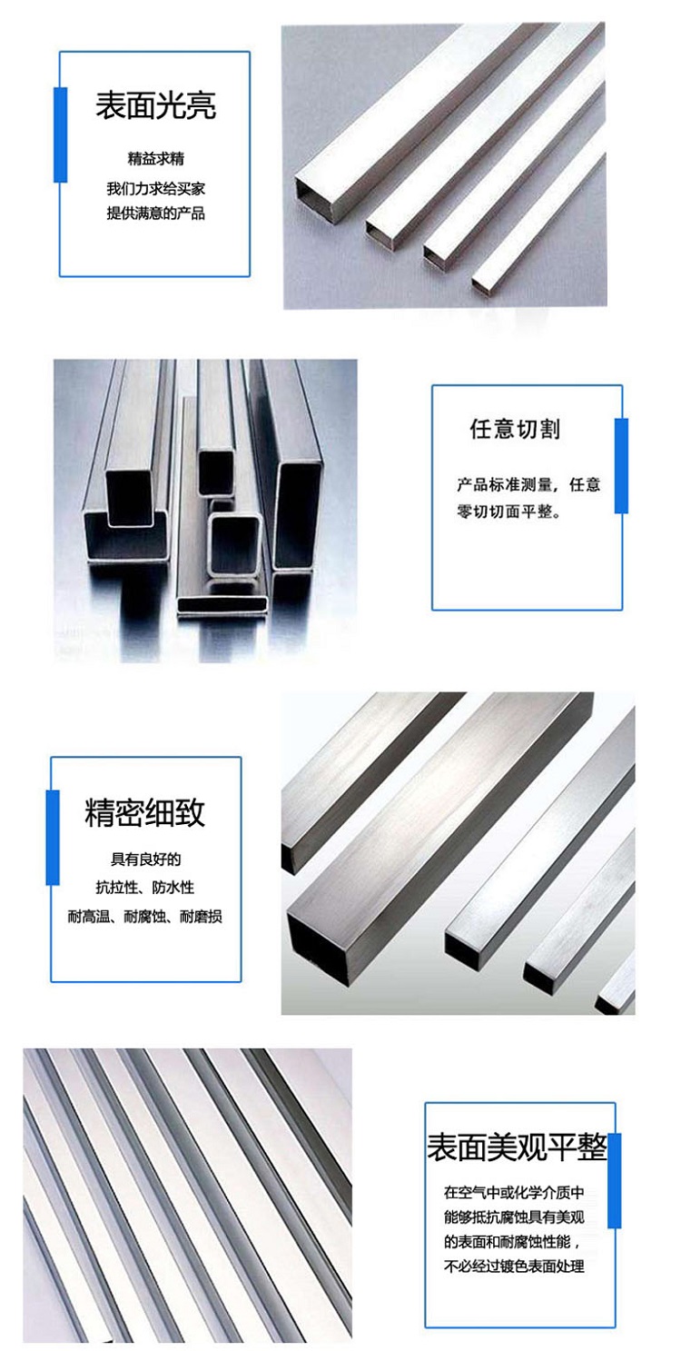 不銹鋼矩管是一種中空的長條鋼材截面是長方形,所以叫做矩形管,大量用作腳手架框架結構,如石油、天燃氣、水、煤氣、蒸氣等,另外,在搞彎、抗扭強度相同時,重量較輕,所以也廣泛用于制造機械零件和工程結構。也常用作生產各種常規(guī)武器、槍管、炮彈等。