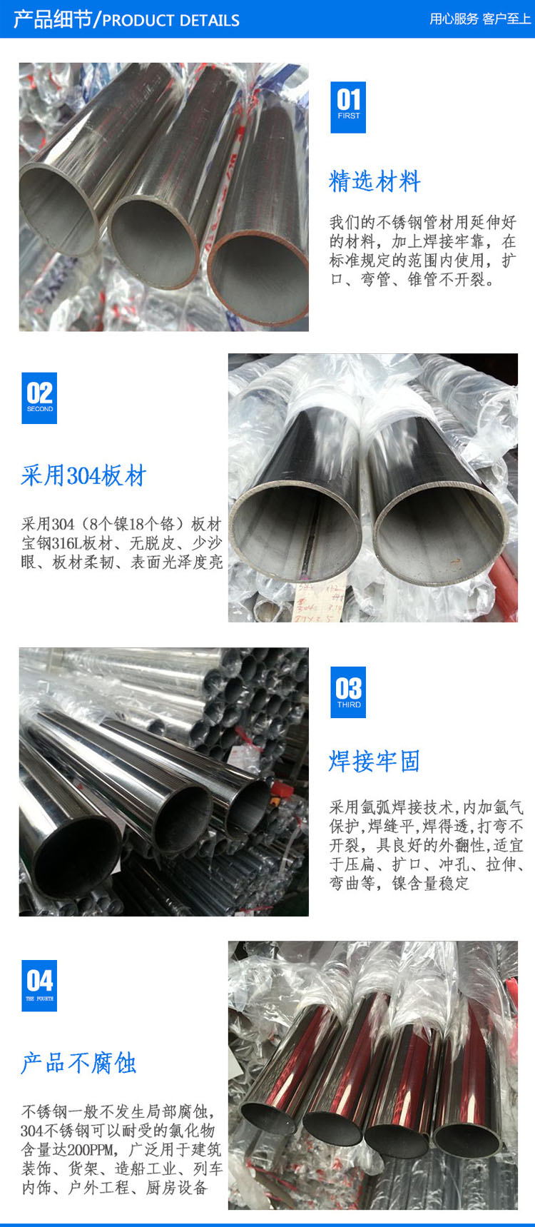 1。原料:所有原料都是優(yōu)質(zhì)不銹鋼管,材質(zhì)****放心